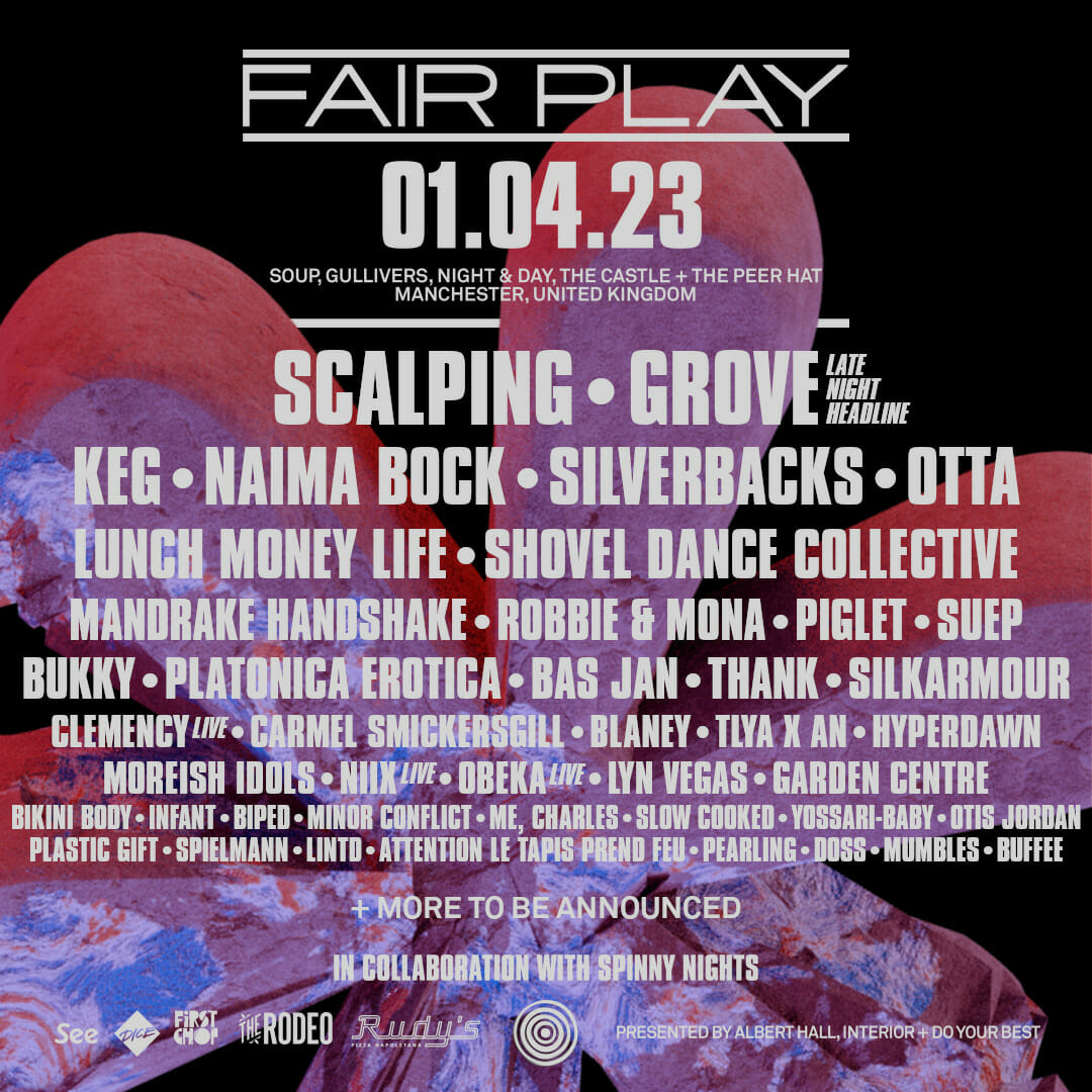 Saturday 1 April 2023 (Tier 2 on-sale – Tickets Here) Artists Include: Scalping, Grove, OTTA, Naima Bock, Bas Jan, Piglet, Mandrake Handshake, THANK, Shovel Dance Collective & many more…
